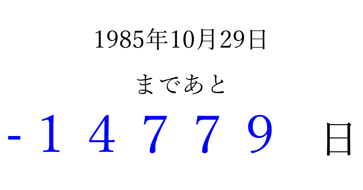 1985年10月29日(火)は もう 00000 日過ぎました 追加すると、トップページからすぐ選べるようになります ※2026/04/16現在の結果です。 最新の状態に更新する ↓シェアして、タイムライン上にカウントダウンを表示しよう!↓ 📤 この結果を共有する Tweet シェア Threads Bluesky 別の日付でカウントダウン 1985年10月のカレンダー このページをブックマークに追加すると、いつでもカウントダウンを確認できます。 (PC: Ctrl+D / Mac: ⌘+D) hitome-notes.comでは以下のページも運営しています。 指定日と期間から日付を計算 | ガチャ確率計算・シミュレーション | プライバシー・ポリシー 運営者:Avocado