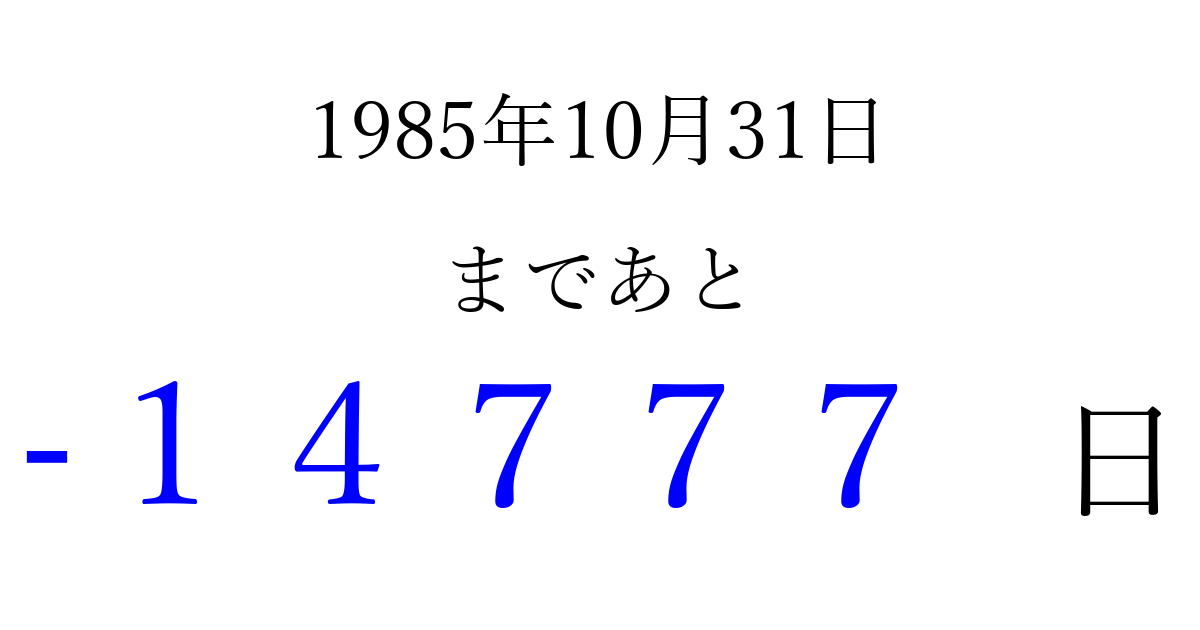1985年10月31日(木)は もう 00000 日過ぎました 追加すると、トップページからすぐ選べるようになります ※2026/04/16現在の結果です。 最新の状態に更新する ↓シェアして、タイムライン上にカウントダウンを表示しよう!↓ 📤 この結果を共有する Tweet シェア Threads Bluesky 別の日付でカウントダウン 1985年10月のカレンダー このページをブックマークに追加すると、いつでもカウントダウンを確認できます。 (PC: Ctrl+D / Mac: ⌘+D) hitome-notes.comでは以下のページも運営しています。 指定日と期間から日付を計算 | ガチャ確率計算・シミュレーション | プライバシー・ポリシー 運営者:Avocado