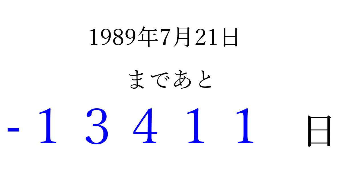 1989年7月21日(金)は もう 00000 日過ぎました 追加すると、トップページからすぐ選べるようになります ※2026/04/09現在の結果です。 最新の状態に更新する ↓シェアして、タイムライン上にカウントダウンを表示しよう!↓ 📤 この結果を共有する Tweet シェア Threads Bluesky 別の日付でカウントダウン 1989年7月のカレンダー このページをブックマークに追加すると、いつでもカウントダウンを確認できます。 (PC: Ctrl+D / Mac: ⌘+D) hitome-notes.comでは以下のページも運営しています。 指定日と期間から日付を計算 | ガチャ確率計算・シミュレーション | プライバシー・ポリシー 運営者:Avocado