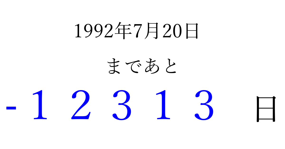 1992年7月20日(月)は もう 00000 日過ぎました 追加すると、トップページからすぐ選べるようになります ※2026/04/06現在の結果です。 最新の状態に更新する ↓シェアして、タイムライン上にカウントダウンを表示しよう!↓ 📤 この結果を共有する Tweet シェア Threads Bluesky 別の日付でカウントダウン 1992年7月のカレンダー このページをブックマークに追加すると、いつでもカウントダウンを確認できます。 (PC: Ctrl+D / Mac: ⌘+D) hitome-notes.comでは以下のページも運営しています。 指定日と期間から日付を計算 | ガチャ確率計算・シミュレーション | プライバシー・ポリシー 運営者:Avocado