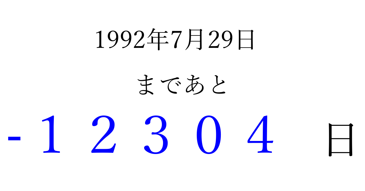 1992年7月29日(水)は もう 00000 日過ぎました 追加すると、トップページからすぐ選べるようになります ※2026/04/06現在の結果です。 最新の状態に更新する ↓シェアして、タイムライン上にカウントダウンを表示しよう!↓ 📤 この結果を共有する Tweet シェア Threads Bluesky 別の日付でカウントダウン 1992年7月のカレンダー このページをブックマークに追加すると、いつでもカウントダウンを確認できます。 (PC: Ctrl+D / Mac: ⌘+D) hitome-notes.comでは以下のページも運営しています。 指定日と期間から日付を計算 | ガチャ確率計算・シミュレーション | プライバシー・ポリシー 運営者:Avocado