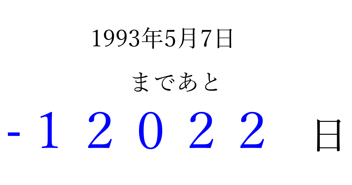 1993年5月7日(金)は もう 00000 日過ぎました 追加すると、トップページからすぐ選べるようになります ※2026/04/06現在の結果です。 最新の状態に更新する ↓シェアして、タイムライン上にカウントダウンを表示しよう!↓ 📤 この結果を共有する Tweet シェア Threads Bluesky 別の日付でカウントダウン 1993年5月のカレンダー このページをブックマークに追加すると、いつでもカウントダウンを確認できます。 (PC: Ctrl+D / Mac: ⌘+D) hitome-notes.comでは以下のページも運営しています。 指定日と期間から日付を計算 | ガチャ確率計算・シミュレーション | プライバシー・ポリシー 運営者:Avocado