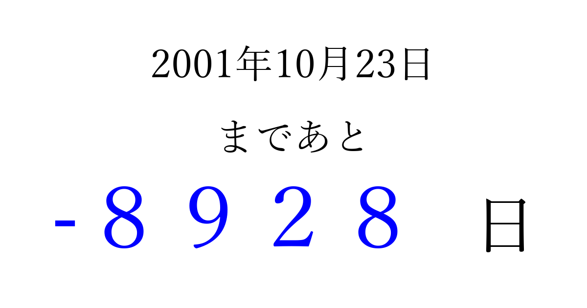 2001年10月23日(火)は もう 0000 日過ぎました 追加すると、トップページからすぐ選べるようになります ※2026/04/03現在の結果です。 最新の状態に更新する ↓シェアして、タイムライン上にカウントダウンを表示しよう!↓ 📤 この結果を共有する Tweet シェア Threads Bluesky 別の日付でカウントダウン 2001年10月のカレンダー このページをブックマークに追加すると、いつでもカウントダウンを確認できます。 (PC: Ctrl+D / Mac: ⌘+D) hitome-notes.comでは以下のページも運営しています。 指定日と期間から日付を計算 | ガチャ確率計算・シミュレーション | プライバシー・ポリシー 運営者:Avocado