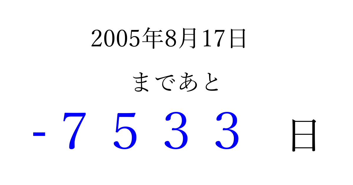 別の日付でカウントダウン 2005年8月のカレンダー