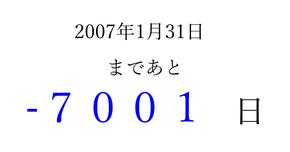 別の日付でカウントダウン 2007年1月のカレンダー