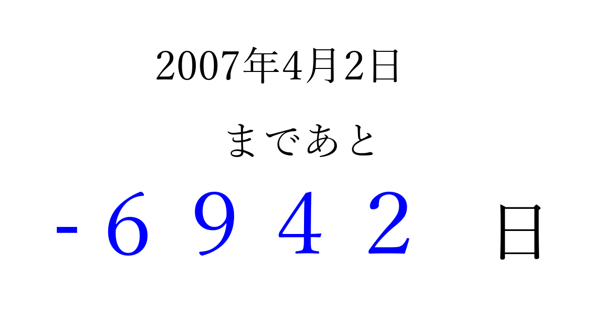 2007年4月2日(月)は もう 0000 日過ぎました 追加すると、トップページからすぐ選べるようになります ※2026/04/04現在の結果です。 最新の状態に更新する ↓シェアして、タイムライン上にカウントダウンを表示しよう!↓ 📤 この結果を共有する Tweet シェア Threads Bluesky 別の日付でカウントダウン 2007年4月のカレンダー このページをブックマークに追加すると、いつでもカウントダウンを確認できます。 (PC: Ctrl+D / Mac: ⌘+D) hitome-notes.comでは以下のページも運営しています。 指定日と期間から日付を計算 | ガチャ確率計算・シミュレーション | プライバシー・ポリシー 運営者:Avocado
