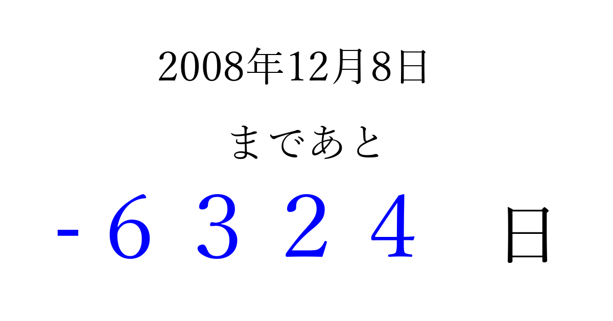 2008年12月8日(月)は もう 0000 日過ぎました 追加すると、トップページからすぐ選べるようになります ※2026/04/02現在の結果です。 最新の状態に更新する ↓シェアして、タイムライン上にカウントダウンを表示しよう!↓ 📤 この結果を共有する Tweet シェア Threads Bluesky 別の日付でカウントダウン 2008年12月のカレンダー このページをブックマークに追加すると、いつでもカウントダウンを確認できます。 (PC: Ctrl+D / Mac: ⌘+D) hitome-notes.comでは以下のページも運営しています。 指定日と期間から日付を計算 | ガチャ確率計算・シミュレーション | プライバシー・ポリシー 運営者:Avocado