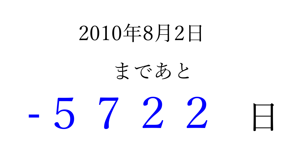 2010年8月2日(月)は もう 0000 日過ぎました 追加すると、トップページからすぐ選べるようになります ※2026/04/02現在の結果です。 最新の状態に更新する ↓シェアして、タイムライン上にカウントダウンを表示しよう!↓ 📤 この結果を共有する Tweet シェア Threads Bluesky 別の日付でカウントダウン 2010年8月のカレンダー このページをブックマークに追加すると、いつでもカウントダウンを確認できます。 (PC: Ctrl+D / Mac: ⌘+D) hitome-notes.comでは以下のページも運営しています。 指定日と期間から日付を計算 | ガチャ確率計算・シミュレーション | プライバシー・ポリシー 運営者:Avocado