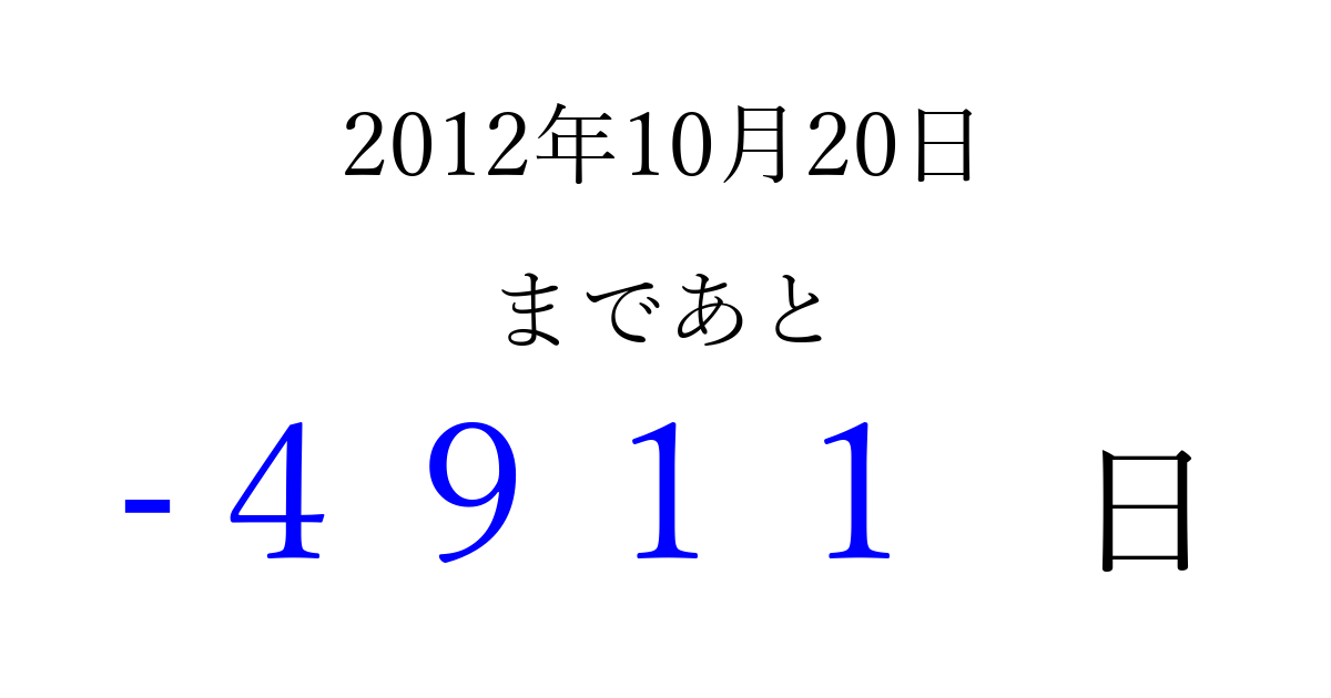 別の日付でカウントダウン 2012年10月のカレンダー