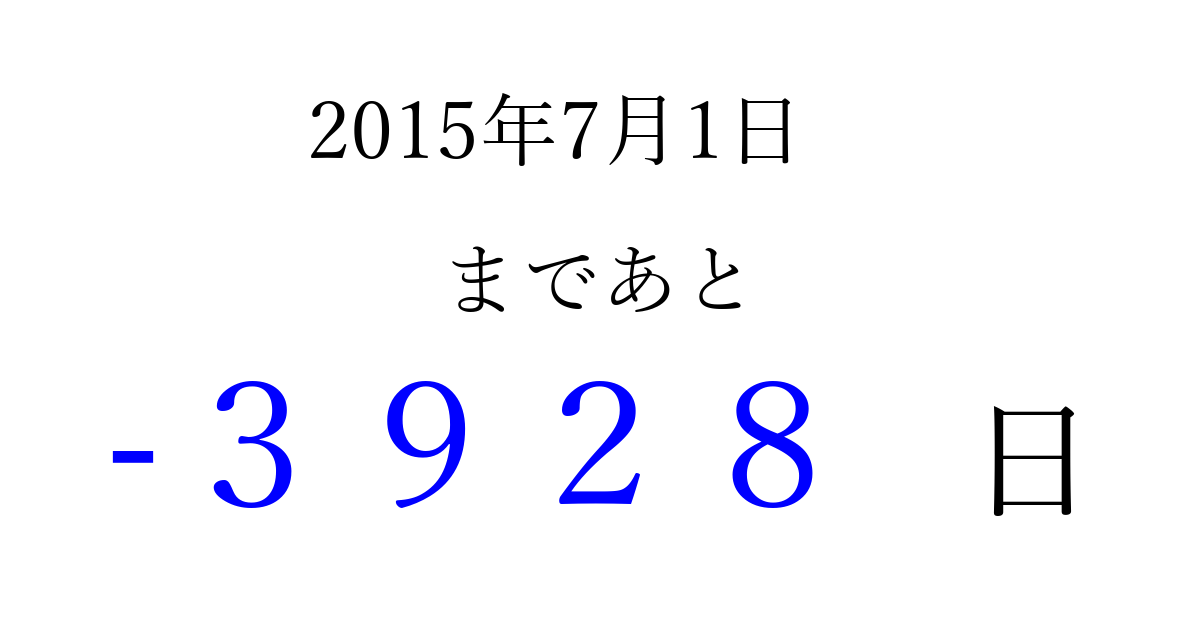 2015年7月1日(水)は もう 0000 日過ぎました 追加すると、トップページからすぐ選べるようになります ※2026/04/02現在の結果です。 最新の状態に更新する ↓シェアして、タイムライン上にカウントダウンを表示しよう!↓ 📤 この結果を共有する Tweet シェア Threads Bluesky 別の日付でカウントダウン 2015年7月のカレンダー このページをブックマークに追加すると、いつでもカウントダウンを確認できます。 (PC: Ctrl+D / Mac: ⌘+D) hitome-notes.comでは以下のページも運営しています。 指定日と期間から日付を計算 | ガチャ確率計算・シミュレーション | プライバシー・ポリシー 運営者:Avocado