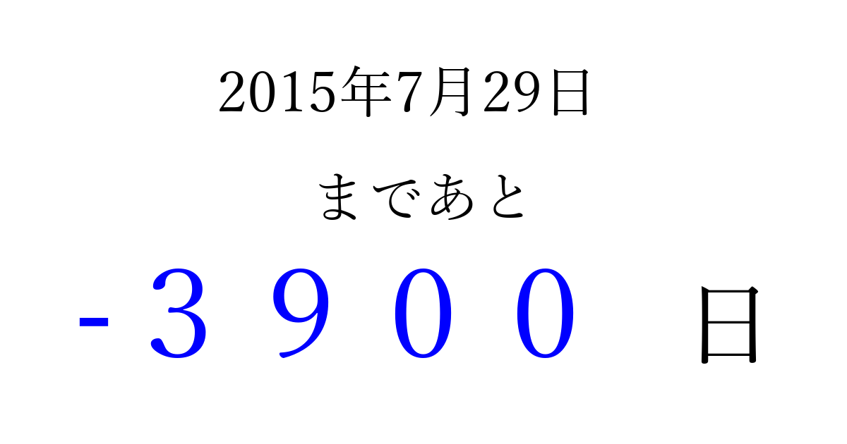 2015年7月29日(水)は もう 0000 日過ぎました 追加すると、トップページからすぐ選べるようになります ※2026/04/02現在の結果です。 最新の状態に更新する ↓シェアして、タイムライン上にカウントダウンを表示しよう!↓ 📤 この結果を共有する Tweet シェア Threads Bluesky 別の日付でカウントダウン 2015年7月のカレンダー このページをブックマークに追加すると、いつでもカウントダウンを確認できます。 (PC: Ctrl+D / Mac: ⌘+D) hitome-notes.comでは以下のページも運営しています。 指定日と期間から日付を計算 | ガチャ確率計算・シミュレーション | プライバシー・ポリシー 運営者:Avocado