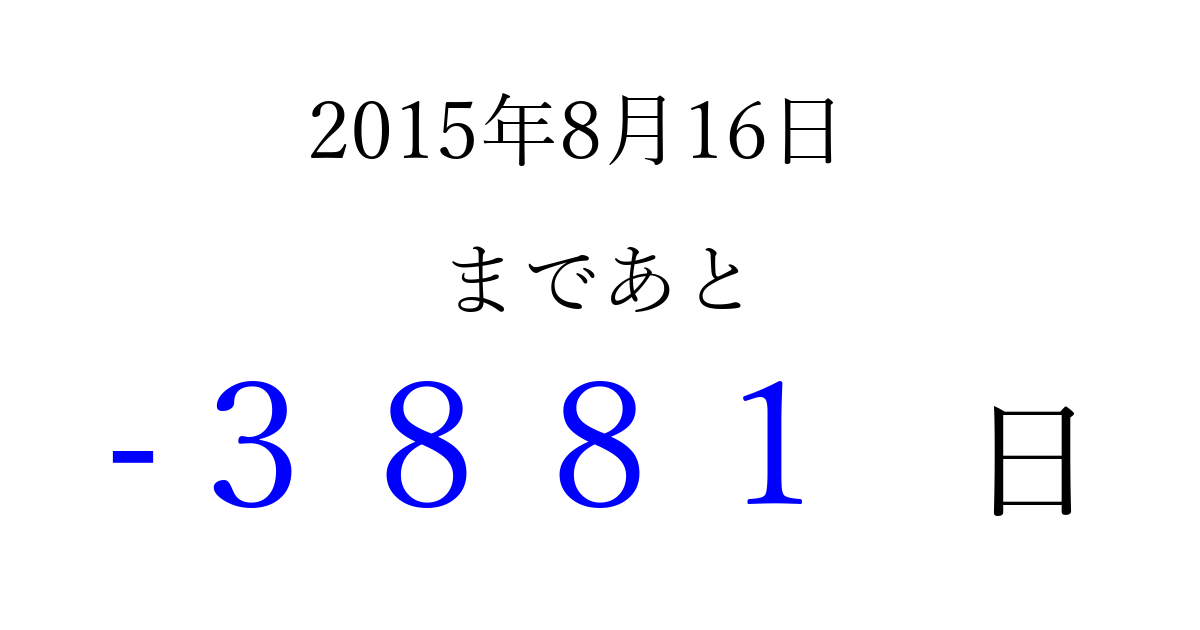 別の日付でカウントダウン 2015年8月のカレンダー
