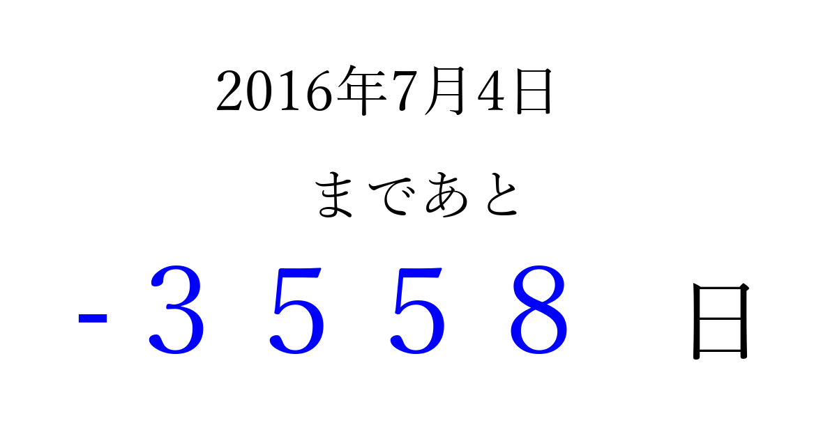2016年7月4日(月)は もう 0000 日過ぎました 追加すると、トップページからすぐ選べるようになります ※2026/04/01現在の結果です。 最新の状態に更新する ↓シェアして、タイムライン上にカウントダウンを表示しよう!↓ 📤 この結果を共有する Tweet シェア Threads Bluesky 別の日付でカウントダウン 2016年7月のカレンダー このページをブックマークに追加すると、いつでもカウントダウンを確認できます。 (PC: Ctrl+D / Mac: ⌘+D) hitome-notes.comでは以下のページも運営しています。 指定日と期間から日付を計算 | ガチャ確率計算・シミュレーション | プライバシー・ポリシー 運営者:Avocado