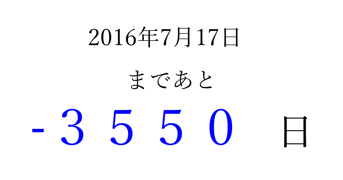 2016年7月17日(日)は もう 0000 日過ぎました 追加すると、トップページからすぐ選べるようになります ※2026/04/06現在の結果です。 最新の状態に更新する ↓シェアして、タイムライン上にカウントダウンを表示しよう!↓ 📤 この結果を共有する Tweet シェア Threads Bluesky 別の日付でカウントダウン 2016年7月のカレンダー このページをブックマークに追加すると、いつでもカウントダウンを確認できます。 (PC: Ctrl+D / Mac: ⌘+D) hitome-notes.comでは以下のページも運営しています。 指定日と期間から日付を計算 | ガチャ確率計算・シミュレーション | プライバシー・ポリシー 運営者:Avocado