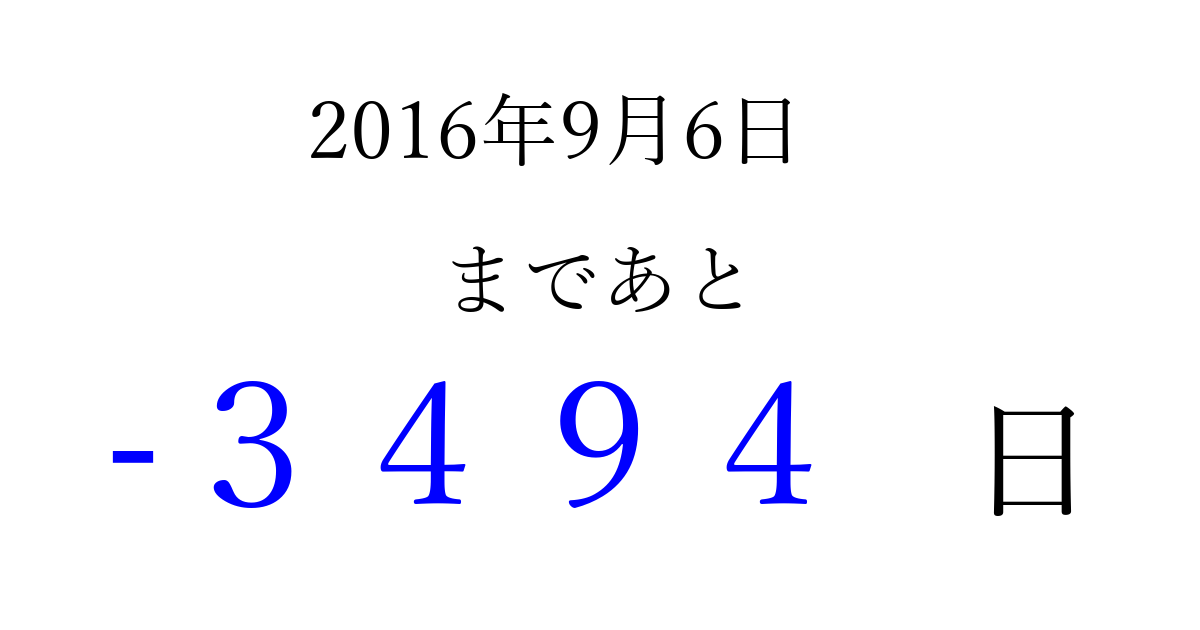 2016年9月6日(火)は もう 0000 日過ぎました 追加すると、トップページからすぐ選べるようになります ※2026/04/01現在の結果です。 最新の状態に更新する ↓シェアして、タイムライン上にカウントダウンを表示しよう!↓ 📤 この結果を共有する Tweet シェア Threads Bluesky 別の日付でカウントダウン 2016年9月のカレンダー このページをブックマークに追加すると、いつでもカウントダウンを確認できます。 (PC: Ctrl+D / Mac: ⌘+D) hitome-notes.comでは以下のページも運営しています。 指定日と期間から日付を計算 | ガチャ確率計算・シミュレーション | プライバシー・ポリシー 運営者:Avocado