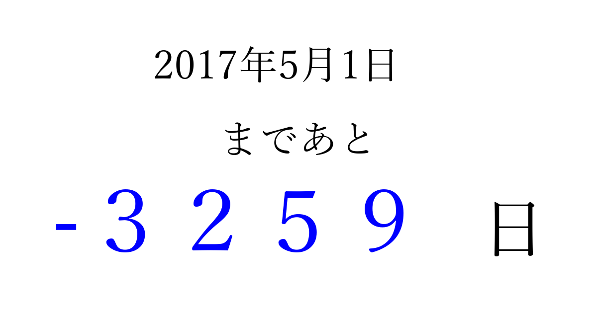 2017年5月1日(月)は もう 0000 日過ぎました 追加すると、トップページからすぐ選べるようになります ※2026/04/03現在の結果です。 最新の状態に更新する ↓シェアして、タイムライン上にカウントダウンを表示しよう!↓ 📤 この結果を共有する Tweet シェア Threads Bluesky 別の日付でカウントダウン 2017年5月のカレンダー このページをブックマークに追加すると、いつでもカウントダウンを確認できます。 (PC: Ctrl+D / Mac: ⌘+D) hitome-notes.comでは以下のページも運営しています。 指定日と期間から日付を計算 | ガチャ確率計算・シミュレーション | プライバシー・ポリシー 運営者:Avocado