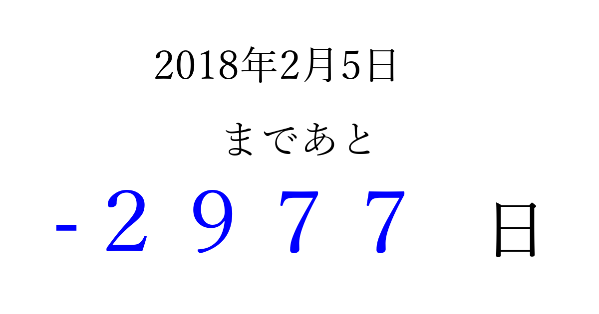 2018年2月5日(月)は もう 0000 日過ぎました 追加すると、トップページからすぐ選べるようになります ※2026/04/01現在の結果です。 最新の状態に更新する ↓シェアして、タイムライン上にカウントダウンを表示しよう!↓ 📤 この結果を共有する Tweet シェア Threads Bluesky 別の日付でカウントダウン 2018年2月のカレンダー このページをブックマークに追加すると、いつでもカウントダウンを確認できます。 (PC: Ctrl+D / Mac: ⌘+D) hitome-notes.comでは以下のページも運営しています。 指定日と期間から日付を計算 | ガチャ確率計算・シミュレーション | プライバシー・ポリシー 運営者:Avocado
