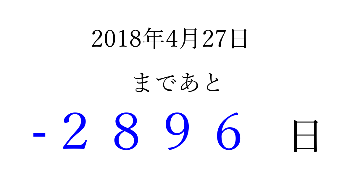 2018年4月27日(金)は もう 0000 日過ぎました 追加すると、トップページからすぐ選べるようになります ※2026/04/01現在の結果です。 最新の状態に更新する ↓シェアして、タイムライン上にカウントダウンを表示しよう!↓ 📤 この結果を共有する Tweet シェア Threads Bluesky 別の日付でカウントダウン 2018年4月のカレンダー このページをブックマークに追加すると、いつでもカウントダウンを確認できます。 (PC: Ctrl+D / Mac: ⌘+D) hitome-notes.comでは以下のページも運営しています。 指定日と期間から日付を計算 | ガチャ確率計算・シミュレーション | プライバシー・ポリシー 運営者:Avocado
