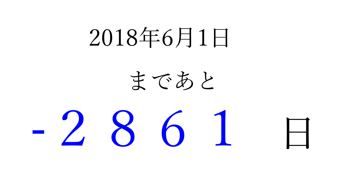 2018年6月1日(金)は もう 0000 日過ぎました 追加すると、トップページからすぐ選べるようになります ※2026/04/01現在の結果です。 最新の状態に更新する ↓シェアして、タイムライン上にカウントダウンを表示しよう!↓ 📤 この結果を共有する Tweet シェア Threads Bluesky 別の日付でカウントダウン 2018年6月のカレンダー このページをブックマークに追加すると、いつでもカウントダウンを確認できます。 (PC: Ctrl+D / Mac: ⌘+D) hitome-notes.comでは以下のページも運営しています。 指定日と期間から日付を計算 | ガチャ確率計算・シミュレーション | プライバシー・ポリシー 運営者:Avocado
