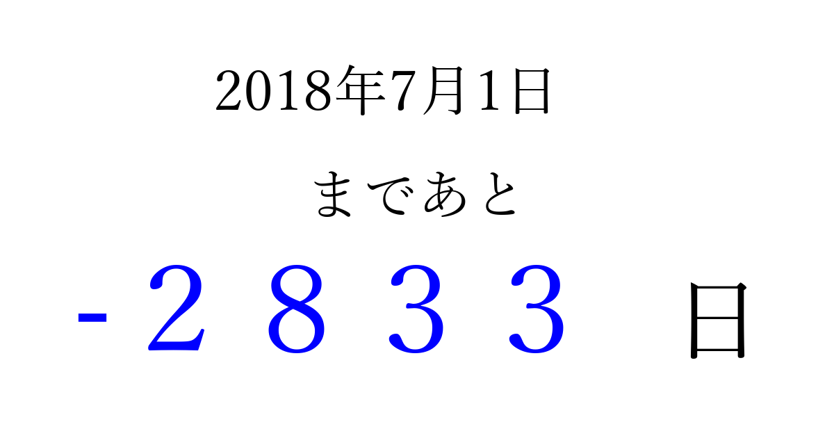 2018年7月1日(日)は もう 0000 日過ぎました 追加すると、トップページからすぐ選べるようになります ※2026/04/03現在の結果です。 最新の状態に更新する ↓シェアして、タイムライン上にカウントダウンを表示しよう!↓ 📤 この結果を共有する Tweet シェア Threads Bluesky 別の日付でカウントダウン 2018年7月のカレンダー このページをブックマークに追加すると、いつでもカウントダウンを確認できます。 (PC: Ctrl+D / Mac: ⌘+D) hitome-notes.comでは以下のページも運営しています。 指定日と期間から日付を計算 | ガチャ確率計算・シミュレーション | プライバシー・ポリシー 運営者:Avocado