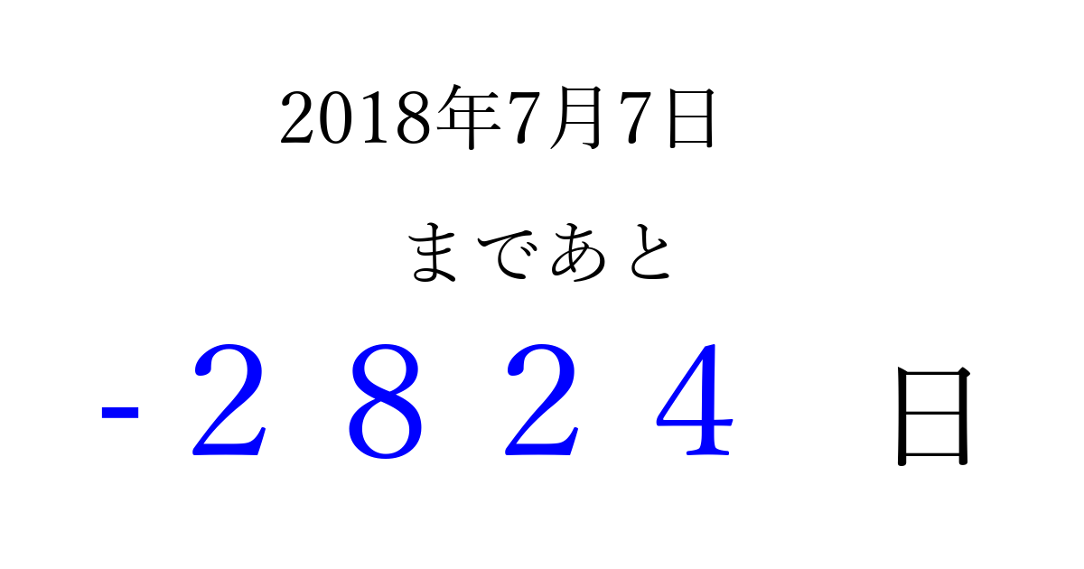 2018年7月7日(土)は もう 0000 日過ぎました 追加すると、トップページからすぐ選べるようになります ※2026/03/31現在の結果です。 最新の状態に更新する ↓シェアして、タイムライン上にカウントダウンを表示しよう!↓ 📤 この結果を共有する Tweet シェア Threads Bluesky 別の日付でカウントダウン 2018年7月のカレンダー このページをブックマークに追加すると、いつでもカウントダウンを確認できます。 (PC: Ctrl+D / Mac: ⌘+D) hitome-notes.comでは以下のページも運営しています。 指定日と期間から日付を計算 | ガチャ確率計算・シミュレーション | プライバシー・ポリシー 運営者:Avocado