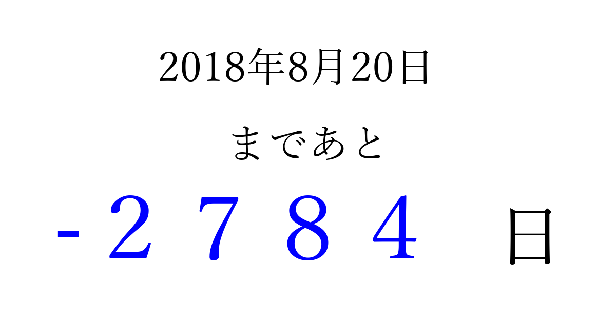 2018年8月20日(月)は もう 0000 日過ぎました 追加すると、トップページからすぐ選べるようになります ※2026/04/04現在の結果です。 最新の状態に更新する ↓シェアして、タイムライン上にカウントダウンを表示しよう!↓ 📤 この結果を共有する Tweet シェア Threads Bluesky 別の日付でカウントダウン 2018年8月のカレンダー このページをブックマークに追加すると、いつでもカウントダウンを確認できます。 (PC: Ctrl+D / Mac: ⌘+D) hitome-notes.comでは以下のページも運営しています。 指定日と期間から日付を計算 | ガチャ確率計算・シミュレーション | プライバシー・ポリシー 運営者:Avocado
