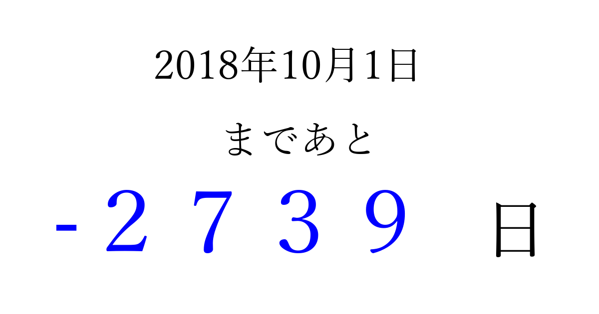2018年10月1日(月)は もう 0000 日過ぎました 追加すると、トップページからすぐ選べるようになります ※2026/04/01現在の結果です。 最新の状態に更新する ↓シェアして、タイムライン上にカウントダウンを表示しよう!↓ 📤 この結果を共有する Tweet シェア Threads Bluesky 別の日付でカウントダウン 2018年10月のカレンダー このページをブックマークに追加すると、いつでもカウントダウンを確認できます。 (PC: Ctrl+D / Mac: ⌘+D) hitome-notes.comでは以下のページも運営しています。 指定日と期間から日付を計算 | ガチャ確率計算・シミュレーション | プライバシー・ポリシー 運営者:Avocado