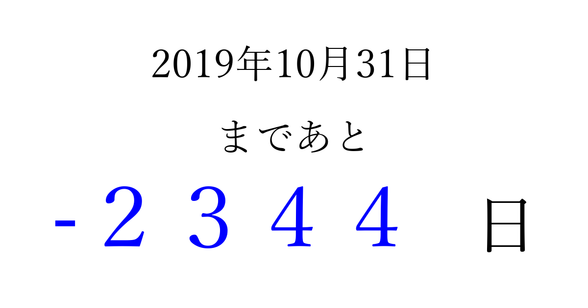別の日付でカウントダウン 2019年10月のカレンダー