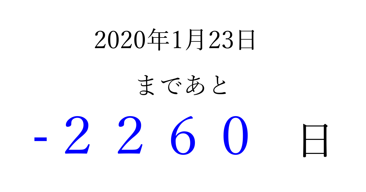 2020年1月23日(木)は もう 0000 日過ぎました 追加すると、トップページからすぐ選べるようになります ※2026/04/01現在の結果です。 最新の状態に更新する ↓シェアして、タイムライン上にカウントダウンを表示しよう!↓ 📤 この結果を共有する Tweet シェア Threads Bluesky 別の日付でカウントダウン 2020年1月のカレンダー このページをブックマークに追加すると、いつでもカウントダウンを確認できます。 (PC: Ctrl+D / Mac: ⌘+D) hitome-notes.comでは以下のページも運営しています。 指定日と期間から日付を計算 | ガチャ確率計算・シミュレーション | プライバシー・ポリシー 運営者:Avocado