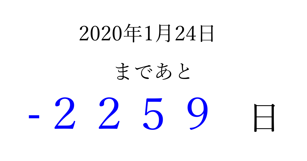 2020年1月24日(金)は もう 0000 日過ぎました 追加すると、トップページからすぐ選べるようになります ※2026/04/01現在の結果です。 最新の状態に更新する ↓シェアして、タイムライン上にカウントダウンを表示しよう!↓ 📤 この結果を共有する Tweet シェア Threads Bluesky 別の日付でカウントダウン 2020年1月のカレンダー このページをブックマークに追加すると、いつでもカウントダウンを確認できます。 (PC: Ctrl+D / Mac: ⌘+D) hitome-notes.comでは以下のページも運営しています。 指定日と期間から日付を計算 | ガチャ確率計算・シミュレーション | プライバシー・ポリシー 運営者:Avocado