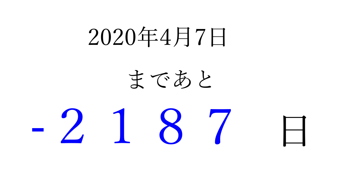 2020年4月7日(火)は もう 0000 日過ぎました 追加すると、トップページからすぐ選べるようになります ※2026/04/03現在の結果です。 最新の状態に更新する ↓シェアして、タイムライン上にカウントダウンを表示しよう!↓ 📤 この結果を共有する Tweet シェア Threads Bluesky 別の日付でカウントダウン 2020年4月のカレンダー このページをブックマークに追加すると、いつでもカウントダウンを確認できます。 (PC: Ctrl+D / Mac: ⌘+D) hitome-notes.comでは以下のページも運営しています。 指定日と期間から日付を計算 | ガチャ確率計算・シミュレーション | プライバシー・ポリシー 運営者:Avocado