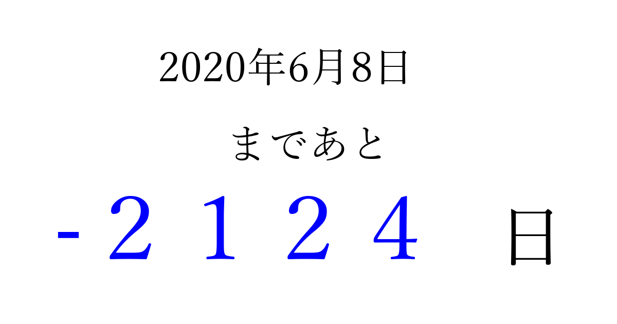 2020年6月8日(月)は もう 0000 日過ぎました 追加すると、トップページからすぐ選べるようになります ※2026/04/02現在の結果です。 最新の状態に更新する ↓シェアして、タイムライン上にカウントダウンを表示しよう!↓ 📤 この結果を共有する Tweet シェア Threads Bluesky 別の日付でカウントダウン 2020年6月のカレンダー このページをブックマークに追加すると、いつでもカウントダウンを確認できます。 (PC: Ctrl+D / Mac: ⌘+D) hitome-notes.comでは以下のページも運営しています。 指定日と期間から日付を計算 | ガチャ確率計算・シミュレーション | プライバシー・ポリシー 運営者:Avocado