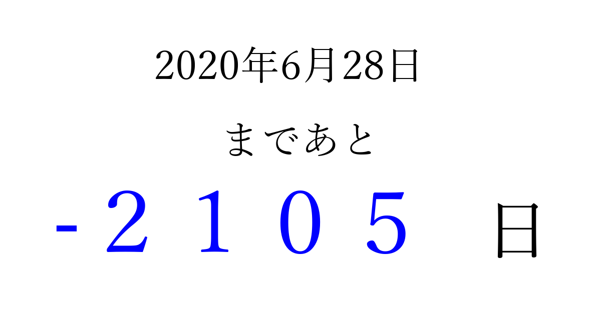 2020年6月28日(日)は もう 0000 日過ぎました 追加すると、トップページからすぐ選べるようになります ※2026/04/03現在の結果です。 最新の状態に更新する ↓シェアして、タイムライン上にカウントダウンを表示しよう!↓ 📤 この結果を共有する Tweet シェア Threads Bluesky 別の日付でカウントダウン 2020年6月のカレンダー このページをブックマークに追加すると、いつでもカウントダウンを確認できます。 (PC: Ctrl+D / Mac: ⌘+D) hitome-notes.comでは以下のページも運営しています。 指定日と期間から日付を計算 | ガチャ確率計算・シミュレーション | プライバシー・ポリシー 運営者:Avocado
