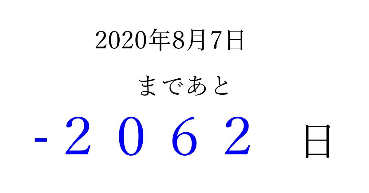 2020年8月7日(金)は もう 0000 日過ぎました 追加すると、トップページからすぐ選べるようになります ※2026/03/31現在の結果です。 最新の状態に更新する ↓シェアして、タイムライン上にカウントダウンを表示しよう!↓ 📤 この結果を共有する Tweet シェア Threads Bluesky 別の日付でカウントダウン 2020年8月のカレンダー このページをブックマークに追加すると、いつでもカウントダウンを確認できます。 (PC: Ctrl+D / Mac: ⌘+D) hitome-notes.comでは以下のページも運営しています。 指定日と期間から日付を計算 | ガチャ確率計算・シミュレーション | プライバシー・ポリシー 運営者:Avocado