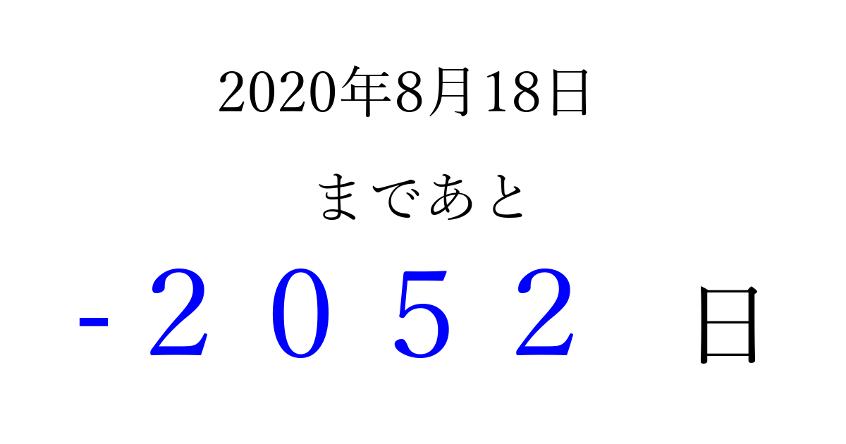 2020年8月18日(火)は もう 0000 日過ぎました 追加すると、トップページからすぐ選べるようになります ※2026/04/01現在の結果です。 最新の状態に更新する ↓シェアして、タイムライン上にカウントダウンを表示しよう!↓ 📤 この結果を共有する Tweet シェア Threads Bluesky 別の日付でカウントダウン 2020年8月のカレンダー このページをブックマークに追加すると、いつでもカウントダウンを確認できます。 (PC: Ctrl+D / Mac: ⌘+D) hitome-notes.comでは以下のページも運営しています。 指定日と期間から日付を計算 | ガチャ確率計算・シミュレーション | プライバシー・ポリシー 運営者:Avocado