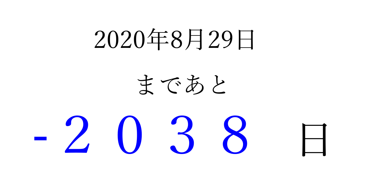 別の日付でカウントダウン 2020年8月のカレンダー
