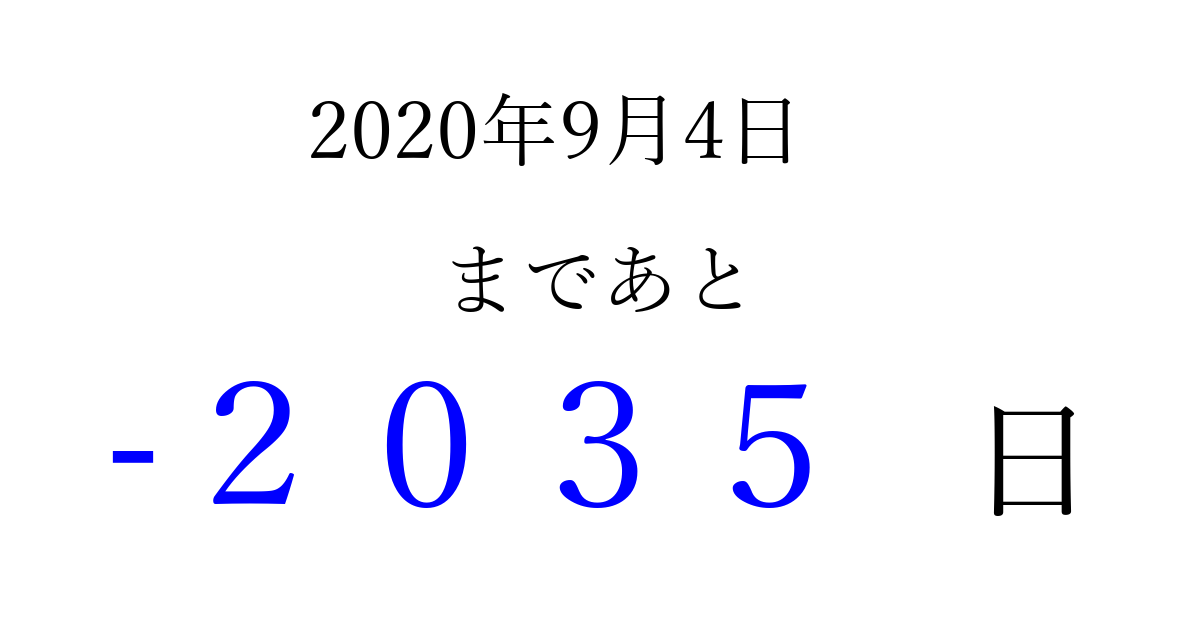 2020年9月4日(金)は もう 0000 日過ぎました 追加すると、トップページからすぐ選べるようになります ※2026/04/01現在の結果です。 最新の状態に更新する ↓シェアして、タイムライン上にカウントダウンを表示しよう!↓ 📤 この結果を共有する Tweet シェア Threads Bluesky 別の日付でカウントダウン 2020年9月のカレンダー このページをブックマークに追加すると、いつでもカウントダウンを確認できます。 (PC: Ctrl+D / Mac: ⌘+D) hitome-notes.comでは以下のページも運営しています。 指定日と期間から日付を計算 | ガチャ確率計算・シミュレーション | プライバシー・ポリシー 運営者:Avocado