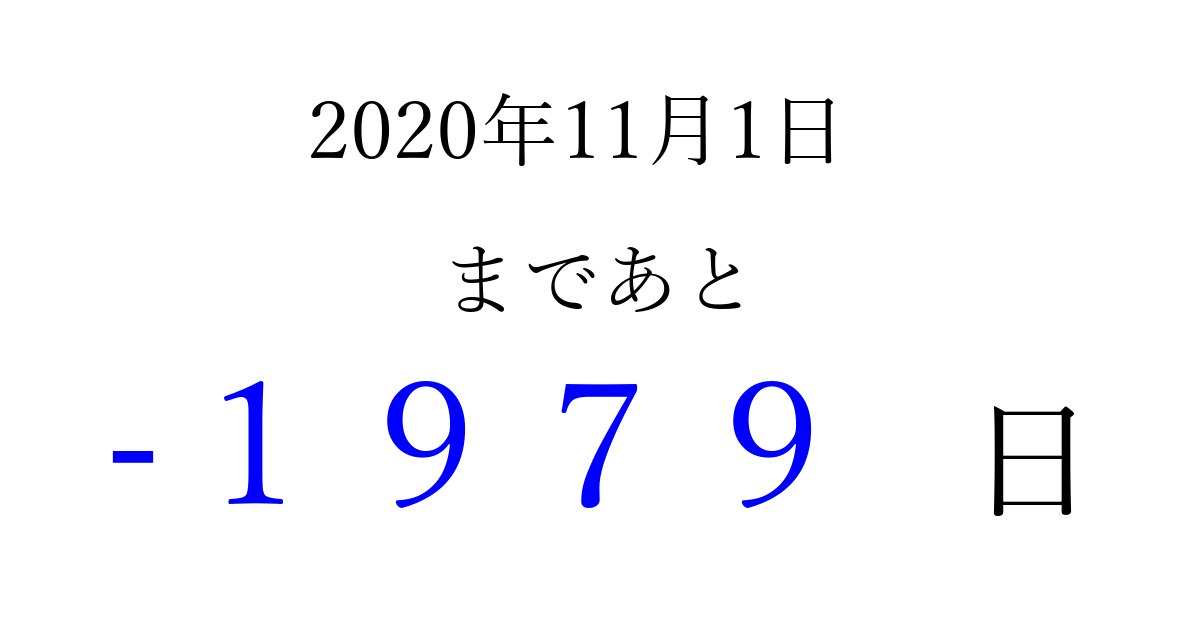 2020年11月1日(日)は もう 0000 日過ぎました 追加すると、トップページからすぐ選べるようになります ※2026/04/03現在の結果です。 最新の状態に更新する ↓シェアして、タイムライン上にカウントダウンを表示しよう!↓ 📤 この結果を共有する Tweet シェア Threads Bluesky 別の日付でカウントダウン 2020年11月のカレンダー このページをブックマークに追加すると、いつでもカウントダウンを確認できます。 (PC: Ctrl+D / Mac: ⌘+D) hitome-notes.comでは以下のページも運営しています。 指定日と期間から日付を計算 | ガチャ確率計算・シミュレーション | プライバシー・ポリシー 運営者:Avocado