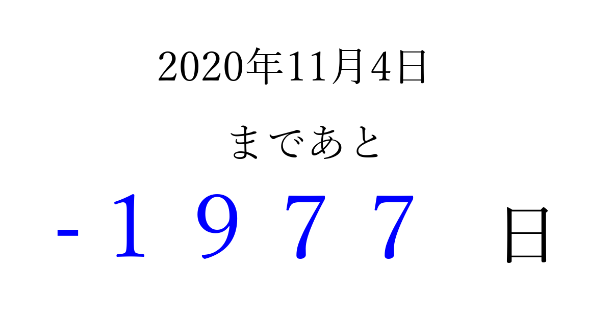 2020年11月4日(水)は もう 0000 日過ぎました 追加すると、トップページからすぐ選べるようになります ※2026/04/04現在の結果です。 最新の状態に更新する ↓シェアして、タイムライン上にカウントダウンを表示しよう!↓ 📤 この結果を共有する Tweet シェア Threads Bluesky 別の日付でカウントダウン 2020年11月のカレンダー このページをブックマークに追加すると、いつでもカウントダウンを確認できます。 (PC: Ctrl+D / Mac: ⌘+D) hitome-notes.comでは以下のページも運営しています。 指定日と期間から日付を計算 | ガチャ確率計算・シミュレーション | プライバシー・ポリシー 運営者:Avocado
