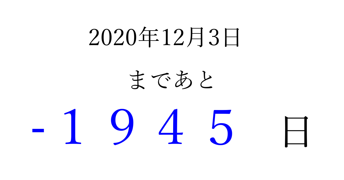 2020年12月3日(木)は もう 0000 日過ぎました 追加すると、トップページからすぐ選べるようになります ※2026/04/01現在の結果です。 最新の状態に更新する ↓シェアして、タイムライン上にカウントダウンを表示しよう!↓ 📤 この結果を共有する Tweet シェア Threads Bluesky 別の日付でカウントダウン 2020年12月のカレンダー このページをブックマークに追加すると、いつでもカウントダウンを確認できます。 (PC: Ctrl+D / Mac: ⌘+D) hitome-notes.comでは以下のページも運営しています。 指定日と期間から日付を計算 | ガチャ確率計算・シミュレーション | プライバシー・ポリシー 運営者:Avocado