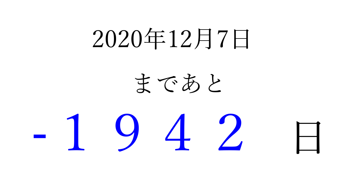 2020年12月7日(月)は もう 0000 日過ぎました 追加すると、トップページからすぐ選べるようになります ※2026/04/02現在の結果です。 最新の状態に更新する ↓シェアして、タイムライン上にカウントダウンを表示しよう!↓ 📤 この結果を共有する Tweet シェア Threads Bluesky 別の日付でカウントダウン 2020年12月のカレンダー このページをブックマークに追加すると、いつでもカウントダウンを確認できます。 (PC: Ctrl+D / Mac: ⌘+D) hitome-notes.comでは以下のページも運営しています。 指定日と期間から日付を計算 | ガチャ確率計算・シミュレーション | プライバシー・ポリシー 運営者:Avocado