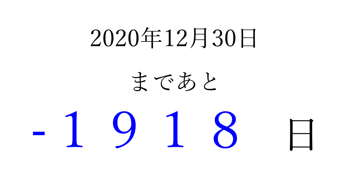 2020年12月30日(水)は もう 0000 日過ぎました 追加すると、トップページからすぐ選べるようになります ※2026/04/01現在の結果です。 最新の状態に更新する ↓シェアして、タイムライン上にカウントダウンを表示しよう!↓ 📤 この結果を共有する Tweet シェア Threads Bluesky 別の日付でカウントダウン 2020年12月のカレンダー このページをブックマークに追加すると、いつでもカウントダウンを確認できます。 (PC: Ctrl+D / Mac: ⌘+D) hitome-notes.comでは以下のページも運営しています。 指定日と期間から日付を計算 | ガチャ確率計算・シミュレーション | プライバシー・ポリシー 運営者:Avocado