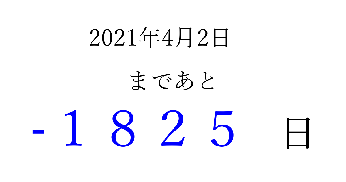 2021年4月2日(金)は もう 0000 日過ぎました 追加すると、トップページからすぐ選べるようになります ※2026/04/01現在の結果です。 最新の状態に更新する ↓シェアして、タイムライン上にカウントダウンを表示しよう!↓ 📤 この結果を共有する Tweet シェア Threads Bluesky 別の日付でカウントダウン 2021年4月のカレンダー このページをブックマークに追加すると、いつでもカウントダウンを確認できます。 (PC: Ctrl+D / Mac: ⌘+D) hitome-notes.comでは以下のページも運営しています。 指定日と期間から日付を計算 | ガチャ確率計算・シミュレーション | プライバシー・ポリシー 運営者:Avocado