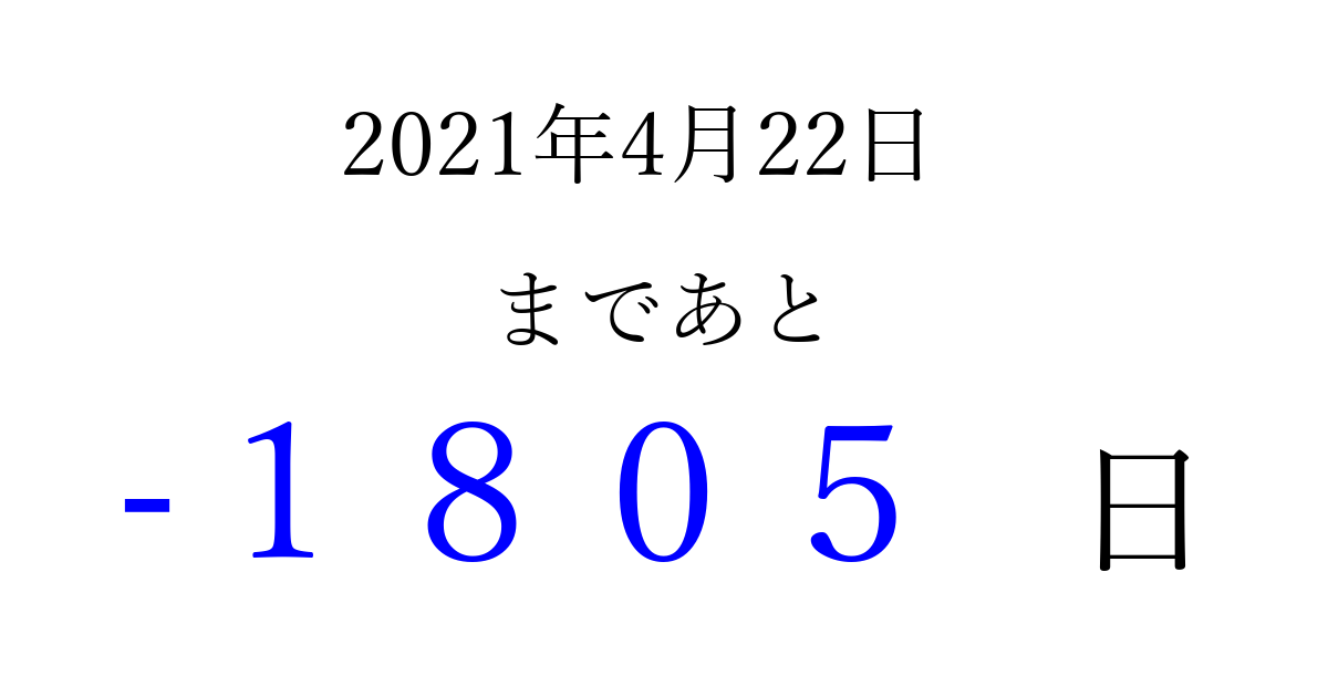 2021年4月22日(木)は もう 0000 日過ぎました 追加すると、トップページからすぐ選べるようになります ※2026/04/01現在の結果です。 最新の状態に更新する ↓シェアして、タイムライン上にカウントダウンを表示しよう!↓ 📤 この結果を共有する Tweet シェア Threads Bluesky 別の日付でカウントダウン 2021年4月のカレンダー このページをブックマークに追加すると、いつでもカウントダウンを確認できます。 (PC: Ctrl+D / Mac: ⌘+D) hitome-notes.comでは以下のページも運営しています。 指定日と期間から日付を計算 | ガチャ確率計算・シミュレーション | プライバシー・ポリシー 運営者:Avocado