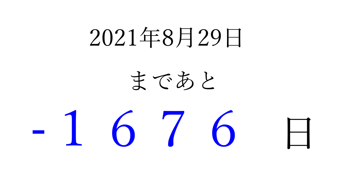 2021年8月29日(日)は もう 0000 日過ぎました 追加すると、トップページからすぐ選べるようになります ※2026/04/01現在の結果です。 最新の状態に更新する ↓シェアして、タイムライン上にカウントダウンを表示しよう!↓ 📤 この結果を共有する Tweet シェア Threads Bluesky 別の日付でカウントダウン 2021年8月のカレンダー このページをブックマークに追加すると、いつでもカウントダウンを確認できます。 (PC: Ctrl+D / Mac: ⌘+D) hitome-notes.comでは以下のページも運営しています。 指定日と期間から日付を計算 | ガチャ確率計算・シミュレーション | プライバシー・ポリシー 運営者:Avocado