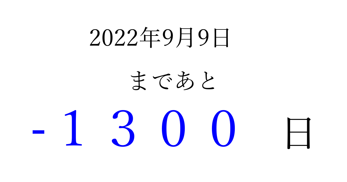 2022年9月9日(金)は もう 0000 日過ぎました 追加すると、トップページからすぐ選べるようになります ※2026/04/01現在の結果です。 最新の状態に更新する ↓シェアして、タイムライン上にカウントダウンを表示しよう!↓ 📤 この結果を共有する Tweet シェア Threads Bluesky 別の日付でカウントダウン 2022年9月のカレンダー このページをブックマークに追加すると、いつでもカウントダウンを確認できます。 (PC: Ctrl+D / Mac: ⌘+D) hitome-notes.comでは以下のページも運営しています。 指定日と期間から日付を計算 | ガチャ確率計算・シミュレーション | プライバシー・ポリシー 運営者:Avocado
