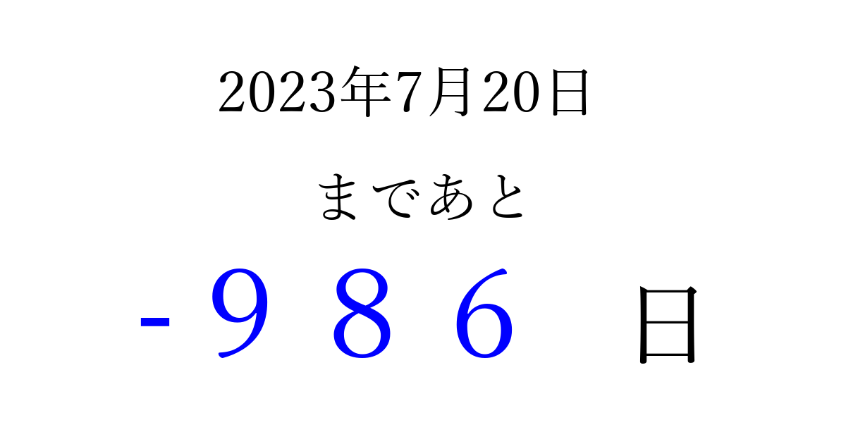 2023年7月20日(木)は もう 000 日過ぎました 追加すると、トップページからすぐ選べるようになります ※2026/04/01現在の結果です。 最新の状態に更新する ↓シェアして、タイムライン上にカウントダウンを表示しよう!↓ 📤 この結果を共有する Tweet シェア Threads Bluesky 別の日付でカウントダウン 2023年7月のカレンダー このページをブックマークに追加すると、いつでもカウントダウンを確認できます。 (PC: Ctrl+D / Mac: ⌘+D) hitome-notes.comでは以下のページも運営しています。 指定日と期間から日付を計算 | ガチャ確率計算・シミュレーション | プライバシー・ポリシー 運営者:Avocado