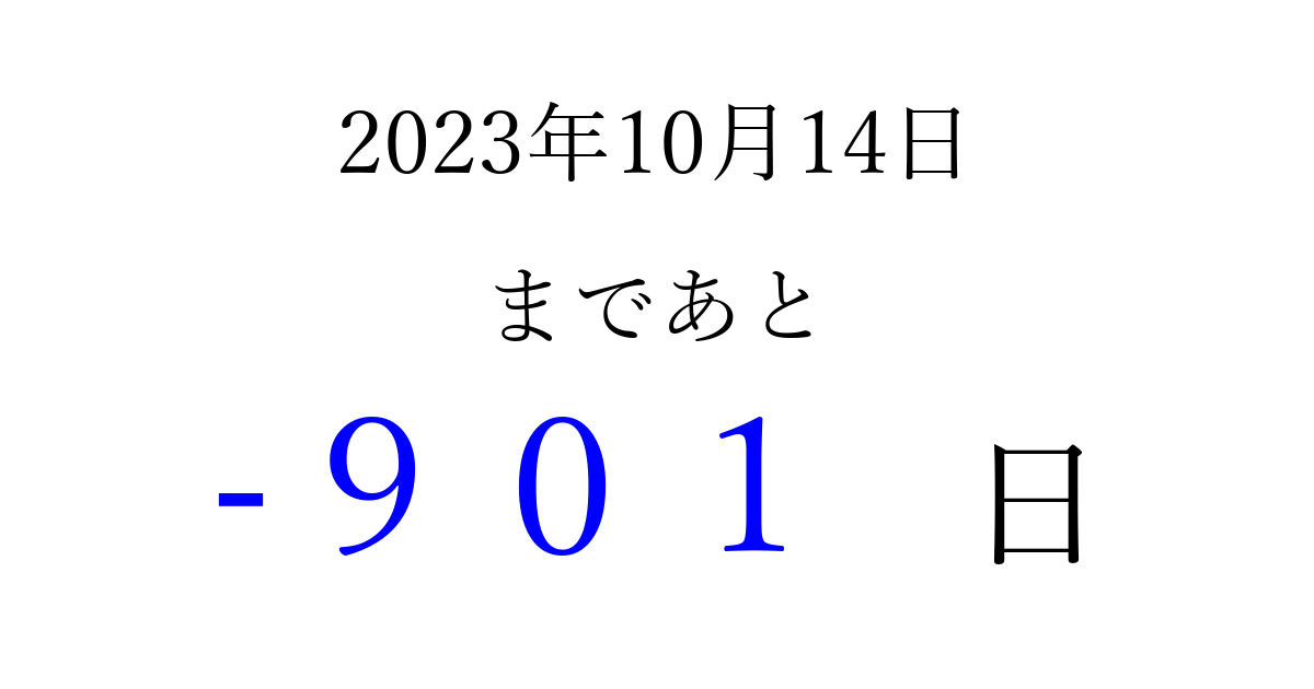 2023年10月14日(土)は もう 000 日過ぎました 追加すると、トップページからすぐ選べるようになります ※2026/04/02現在の結果です。 最新の状態に更新する ↓シェアして、タイムライン上にカウントダウンを表示しよう!↓ 📤 この結果を共有する Tweet シェア Threads Bluesky 別の日付でカウントダウン 2023年10月のカレンダー このページをブックマークに追加すると、いつでもカウントダウンを確認できます。 (PC: Ctrl+D / Mac: ⌘+D) hitome-notes.comでは以下のページも運営しています。 指定日と期間から日付を計算 | ガチャ確率計算・シミュレーション | プライバシー・ポリシー 運営者:Avocado
