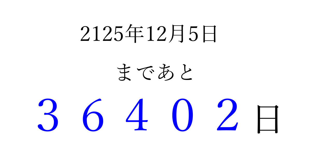 別の日付でカウントダウン 2125年12月のカレンダー