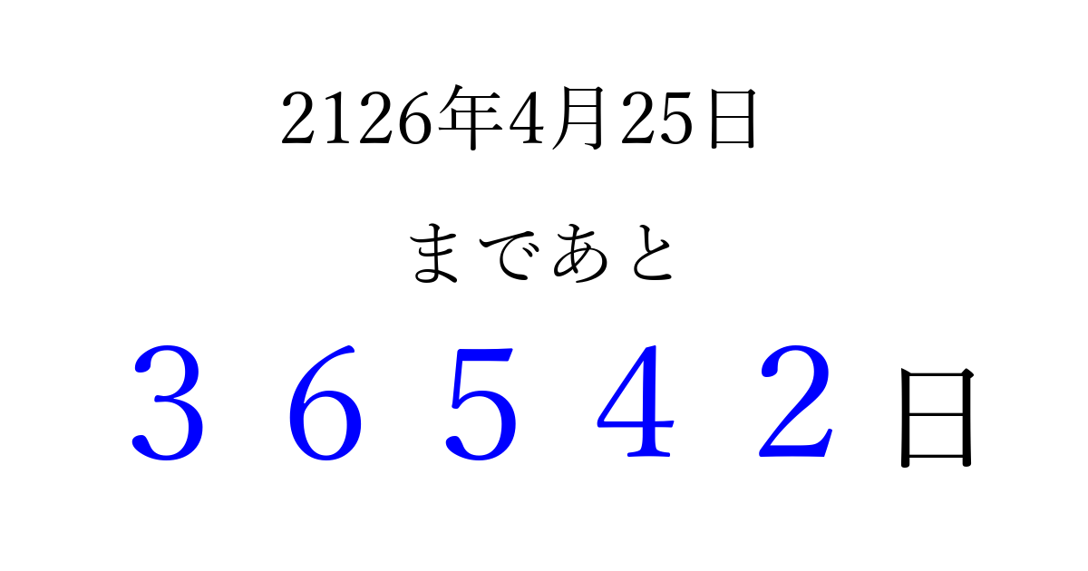 別の日付でカウントダウン 2126年4月のカレンダー